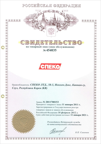러시아 상표권등록 (제454035호)