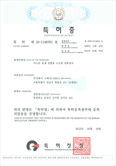 (특허) 아스콘-골재 선별용-스크린 진동장치