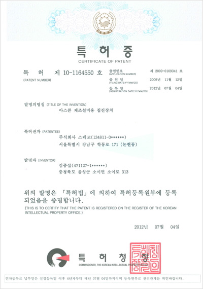 (특허) 아스콘 제조설비용 집진장치