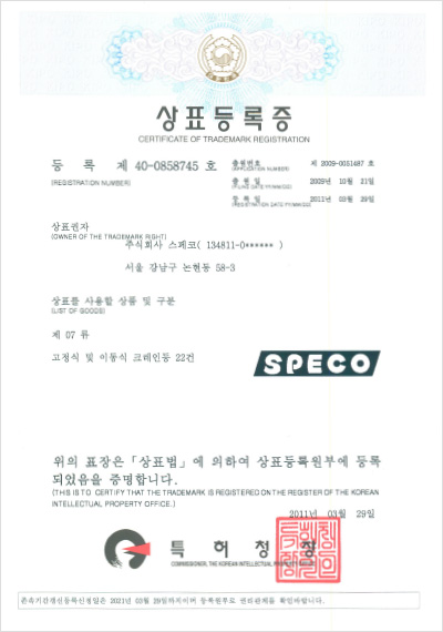 (등록제40-0858745호) 상표등록증