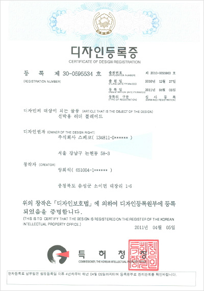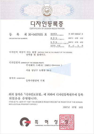 (디자인등록) 선박용 핀 블레이드 앞